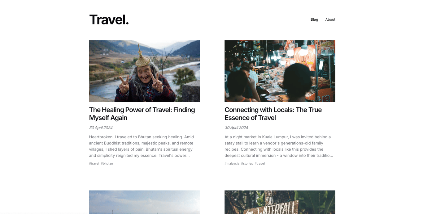 Personal Blogs: Perfect for personal projects with a focus on clean design and simplicity.