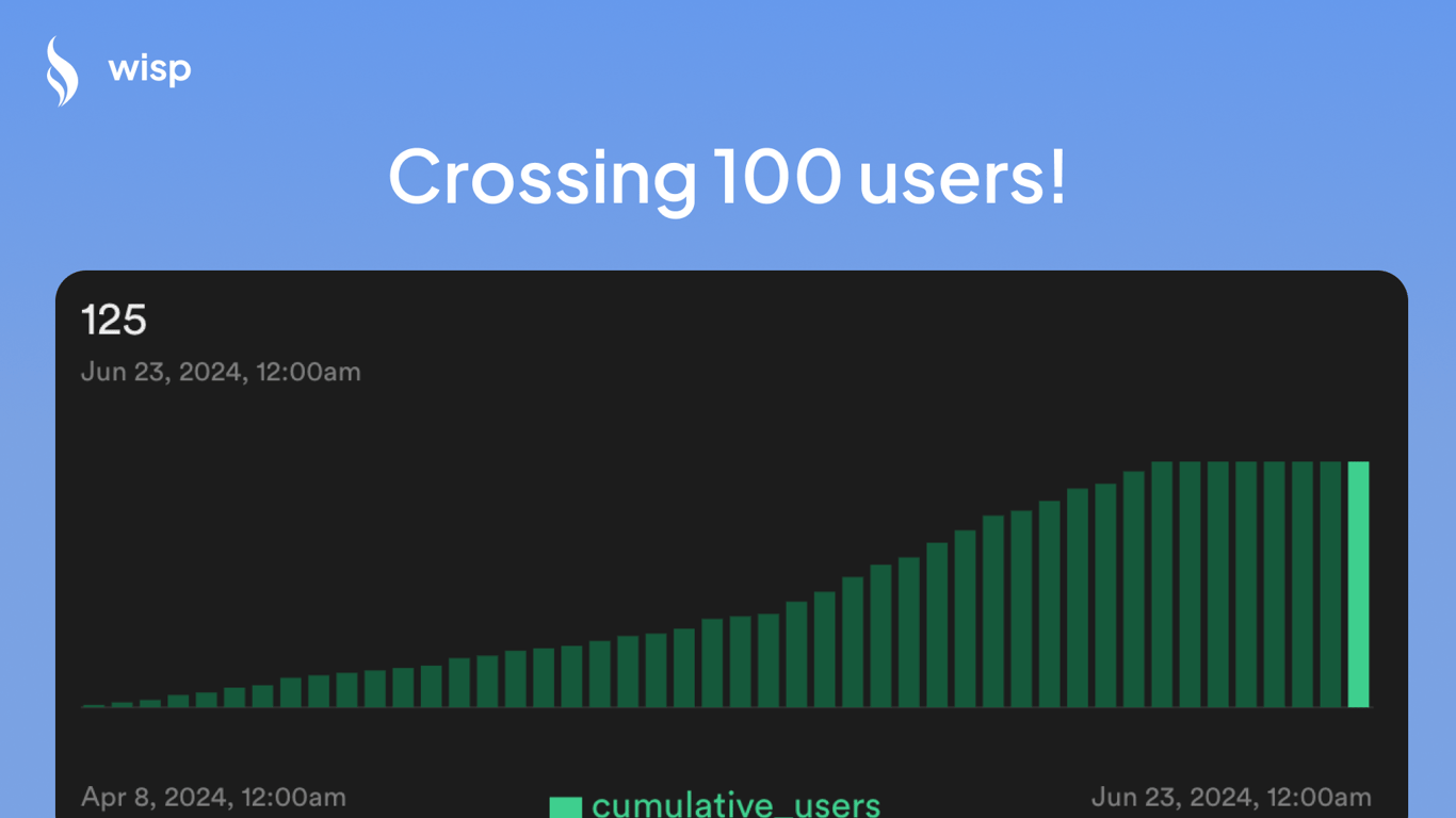I'm thrilled to announce that wisp has reached a significant milestone - 100 users!