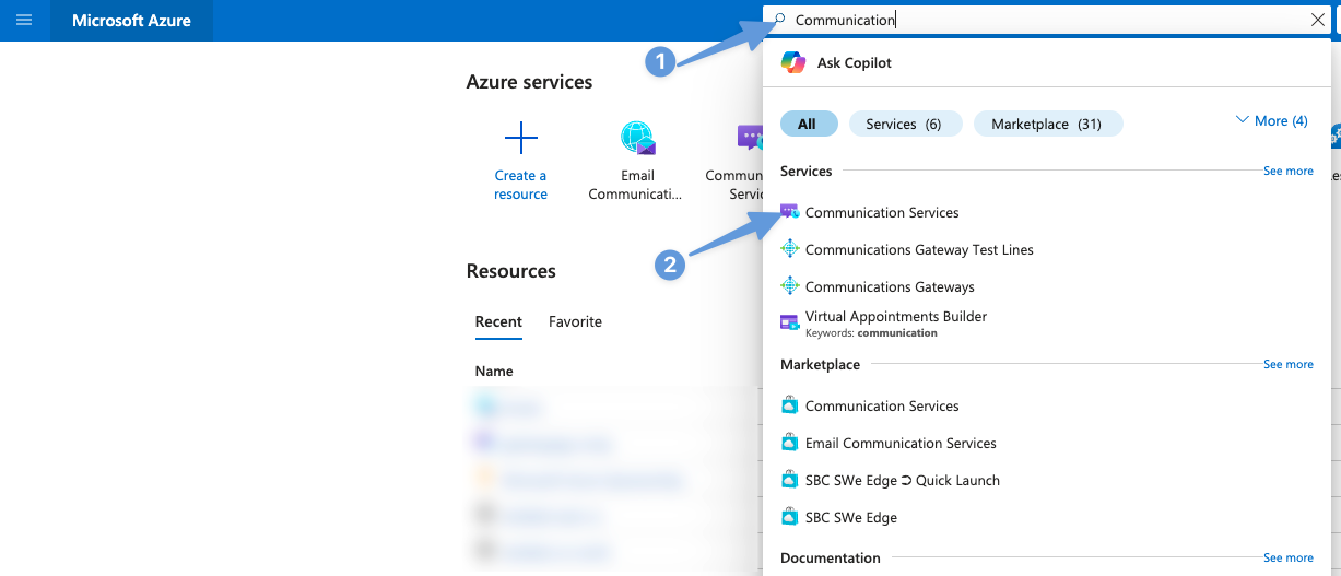 Step 2.1: Search for "Communication Services": Use the Azure portal's search bar to find this service.