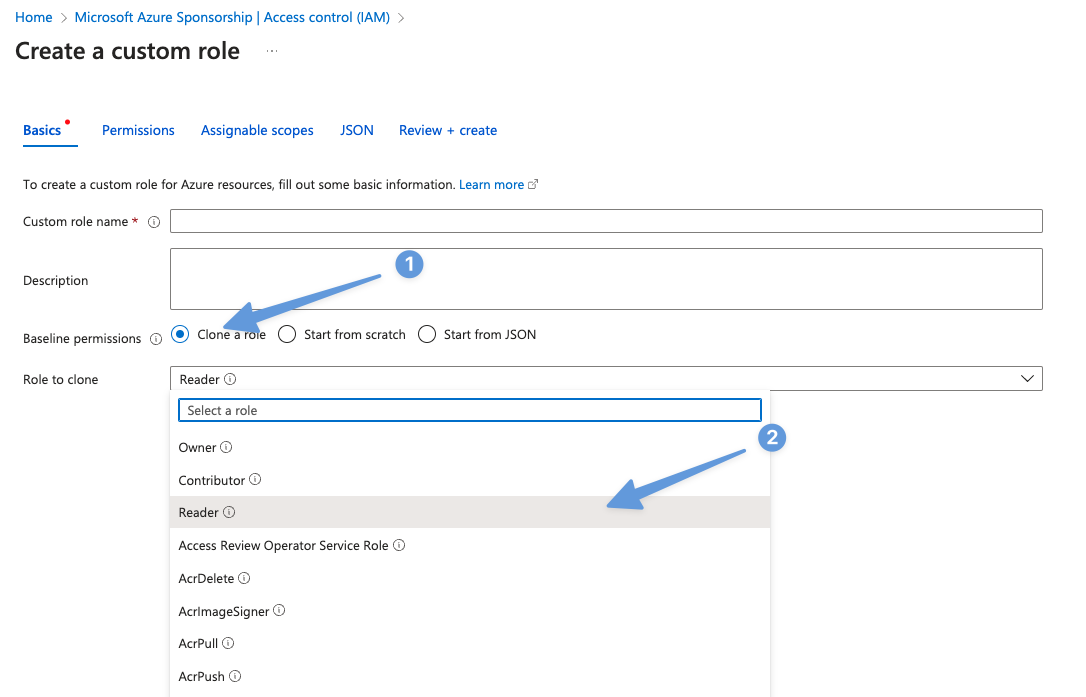 Step 4.3 Create a custom role: Select "Create a custom role".