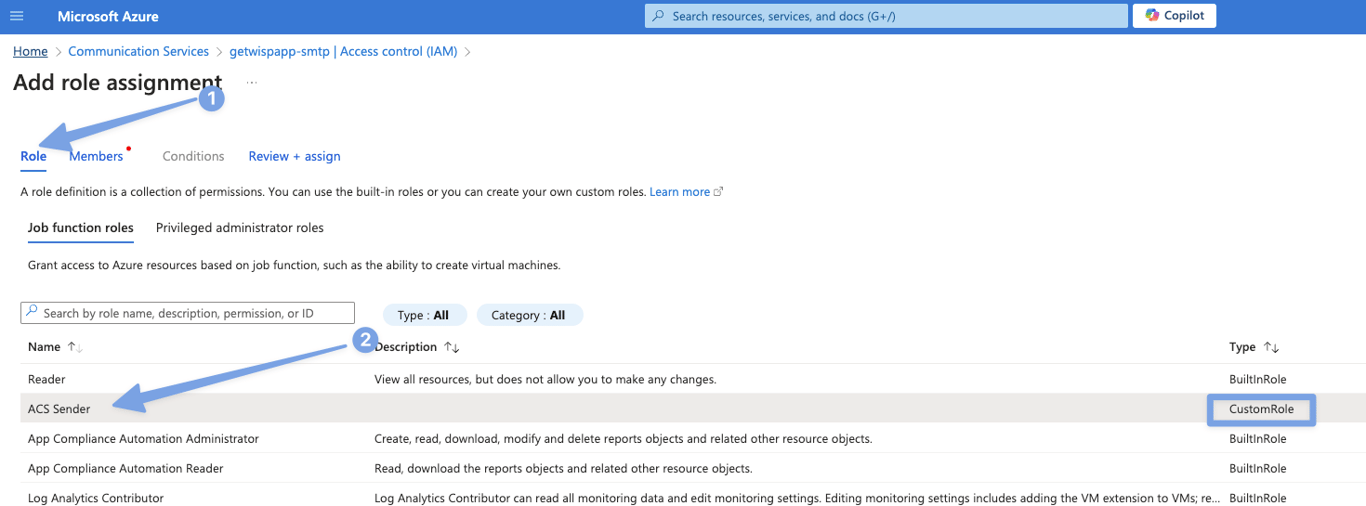 In this step, we'll create a custom role and assign it to our Entra application to grant the necessary permissions for email sending.