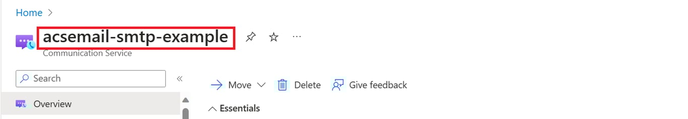 Azure Communication Service Resource name: acsemail-smtp-example
