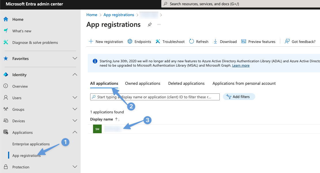 Step 3.4: Locate your new app: After creation, search for your newly registered application.
