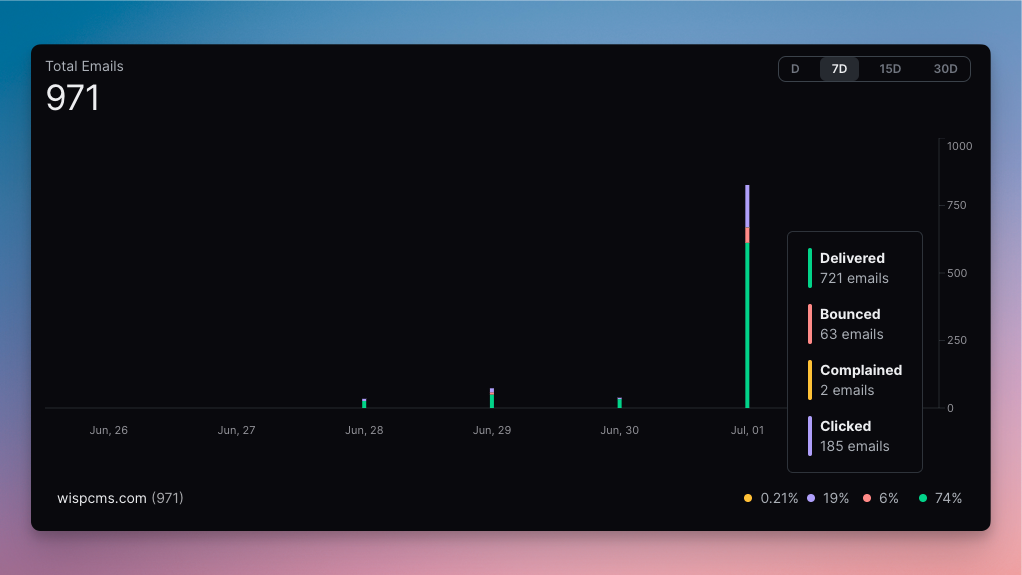 Out of those 970 emails, the campaign achieved a staggering 20% click-through rate, with 180+ recipients clicking through to check out wisp in the span of a single day.