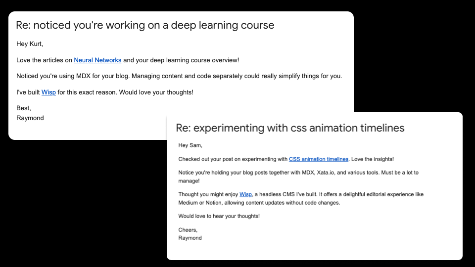 Side story: One of my email actually landed in the inbox of Anand who's building FirstQuadrant and that's how I discovered them.