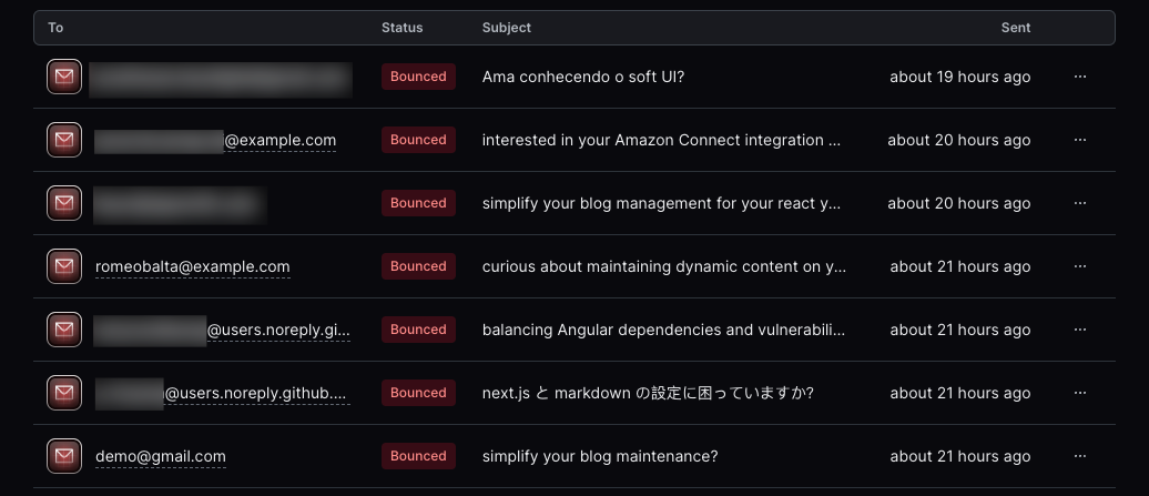 Something that completely slipped my mind was email deliverability. Although I was using a different domain from my mail product, I've never sent emails at this volume before so the experiment impacted my email deliverability and some emails were landing in spam.