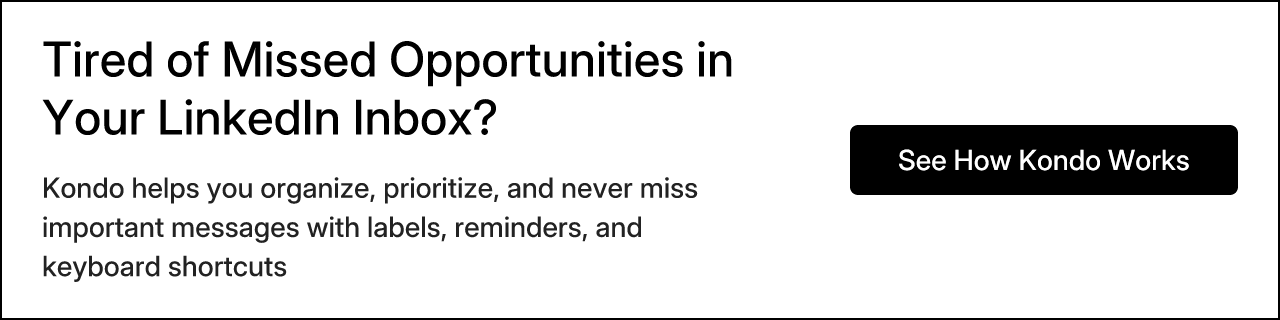 While manual strategies can help, purpose-built tools like Kondo transform the experience from frustrating to frictionless. By implementing labels, reminders, shortcuts, snippets, and integrations, Kondo turns LinkedIn's basic inbox into a sophisticated communication hub optimized for professional productivity.