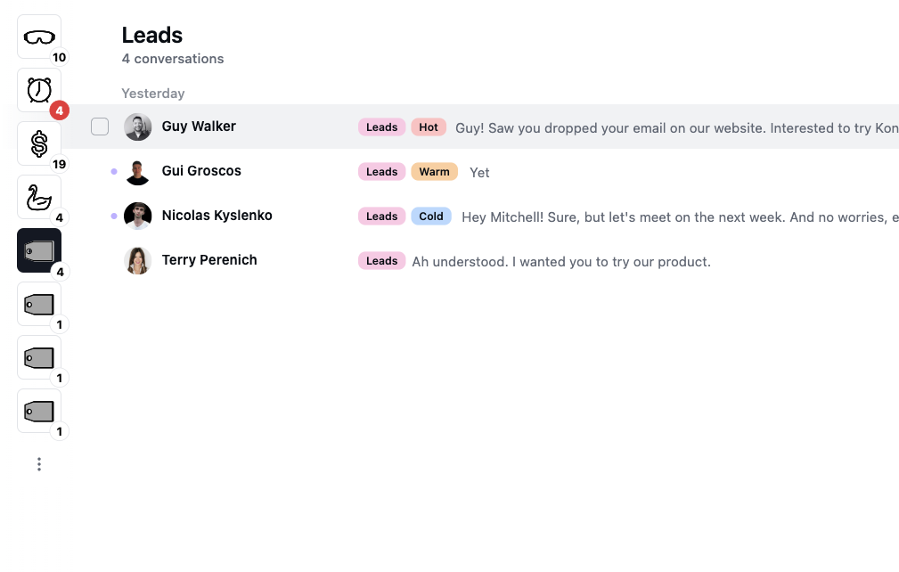 Kondo's labeling system allows you to categorize conversations with custom labels like "Hot Lead," "Candidate," or "Client." This instantly transforms your one-dimensional inbox into a multi-dimensional command center.