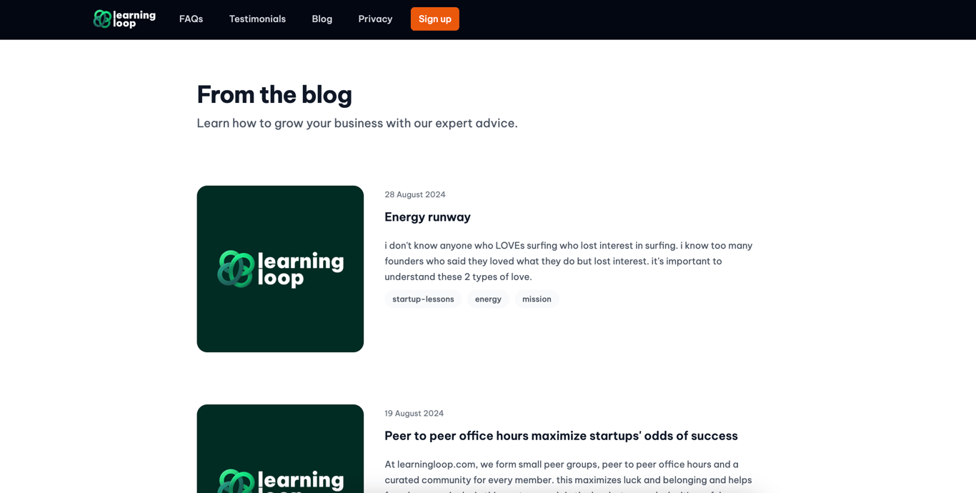 Learning Loop: A community for early-stage founders, primarily based in Singapore but with a global reach. Their blog is powered by Wisp.