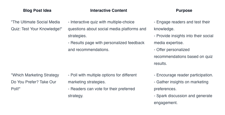 By incorporating quizzes and polls into your blog posts, you create a more interactive experience for your readers and gain valuable insights that can inform your marketing strategy.