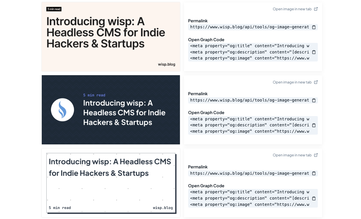Now, here are three proven templates you can straight-up copy from the Wisp's OG Image Generator:
