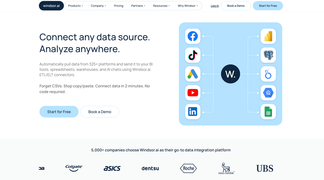 For technical teams and developers supporting sales operations, data silos are a nightmare. Windsor.ai acts as the bridge, collecting sales data from widely used tools such as HubSpot, Pipedrive, and 325+ other business systems, and standardizing it for downstream use. As a result, pipeline changes, deal stages, and revenue signals are captured without manual exports or complex custom scripting.