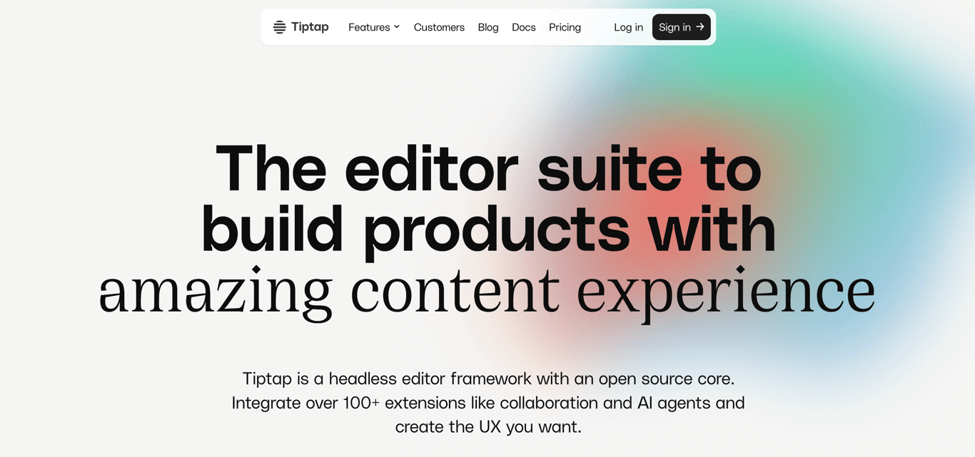 Tiptap is a headless, extensible text editor framework designed to provide a great content editing experience. It is based on an open-source core and offers a wide range of extensions to enhance its functionality. Tiptap supports real-time collaboration, AI-powered content transformation, inline comments, and more. It is highly customizable and can be tailored to meet specific user needs.