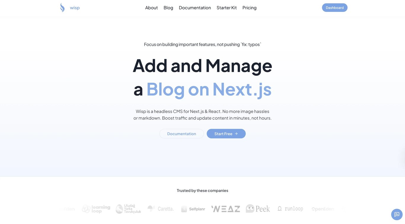 Overview: Wisp is a headless CMS purpose-built for adding a blog to Next.js and React sites. It solves the specific pain point many developers face: managing blog content without constant engineering tickets, allowing teams to ship content faster.