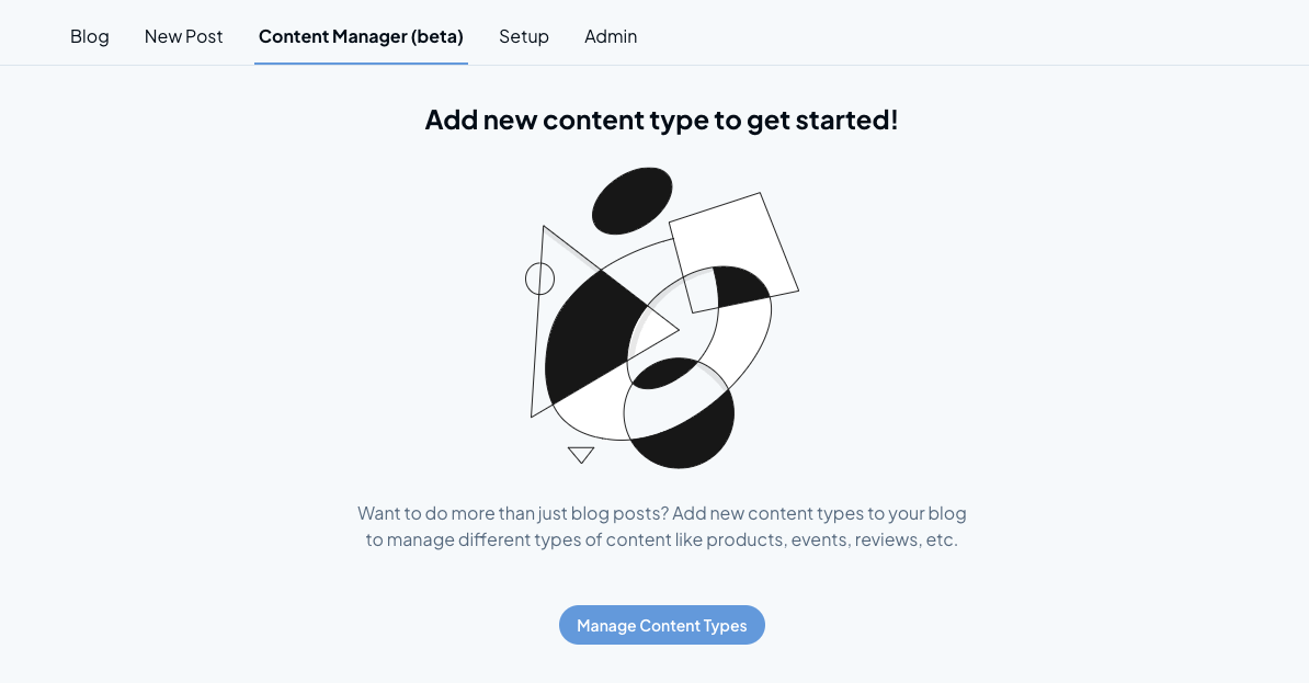 Click on "Manage Content Types" if this is your first content type, otherwise, click on the gear icon to manage your content type.