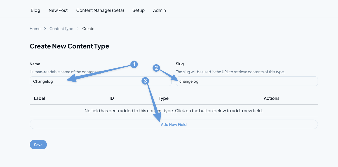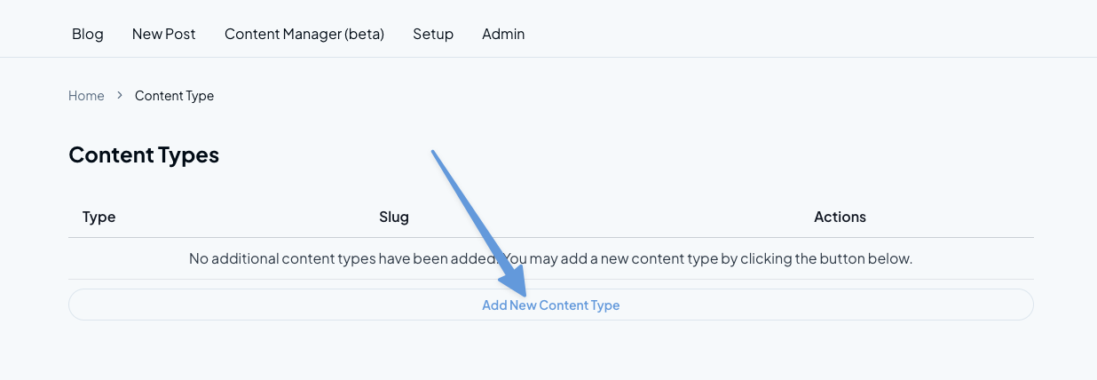 Click on "Add New Content Type" to create a new content type.